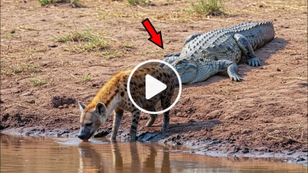 In the wild, the unexpected often unfolds in the most astonishing ways, and one such moment was captured when a hyena, oblivious to its surroundings, failed to notice a lurking crocodile. This encounter highlights the unpredictable nature of wildlife interactions, where the balance of predator and prey can shift in an instant. The hyena, known for its cunning and opportunistic behavior, was likely preoccupied with its own pursuits, unaware of the silent threat that lay just beneath the water’s surface, waiting for the perfect moment to strike.