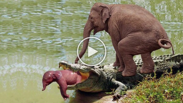 In a dramatic display of maternal instinct, a mother elephant fiercely confronted a crocodile that posed a threat to her young calf. The scene unfolded near a watering hole, where the mother had been leading her baby to drink. Suddenly, the crocodile, lurking just beneath the surface, lunged at the unsuspecting calf. Without hesitation, the mother elephant charged forward, her massive frame creating a powerful force as she aimed to protect her offspring from the predator’s jaws.